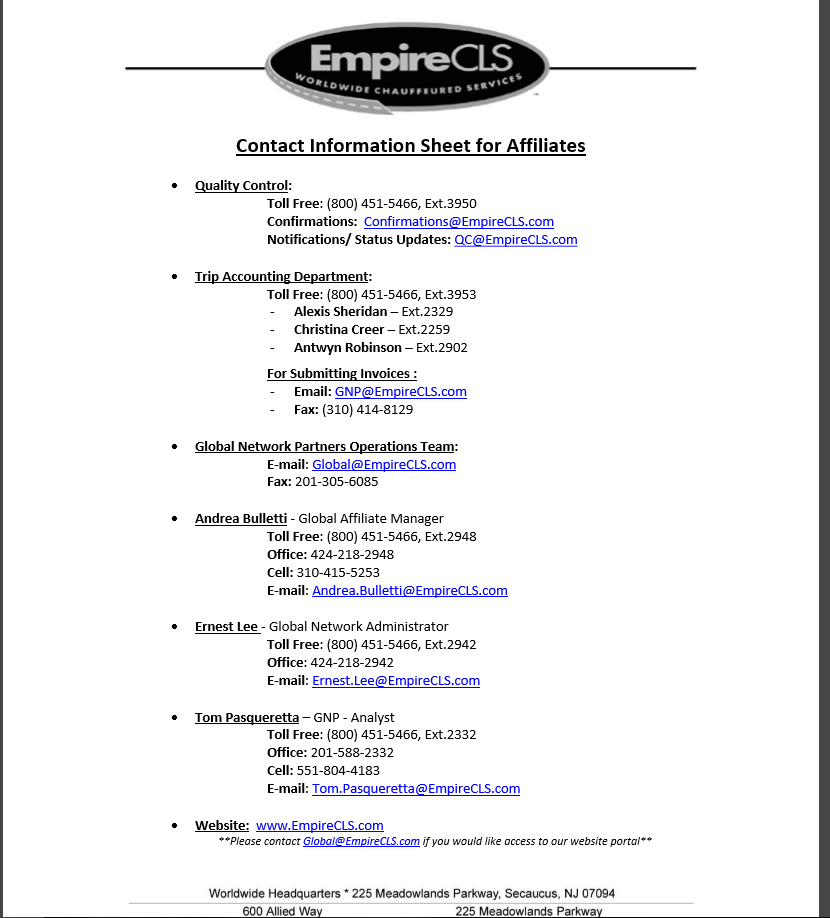 List of Contacts